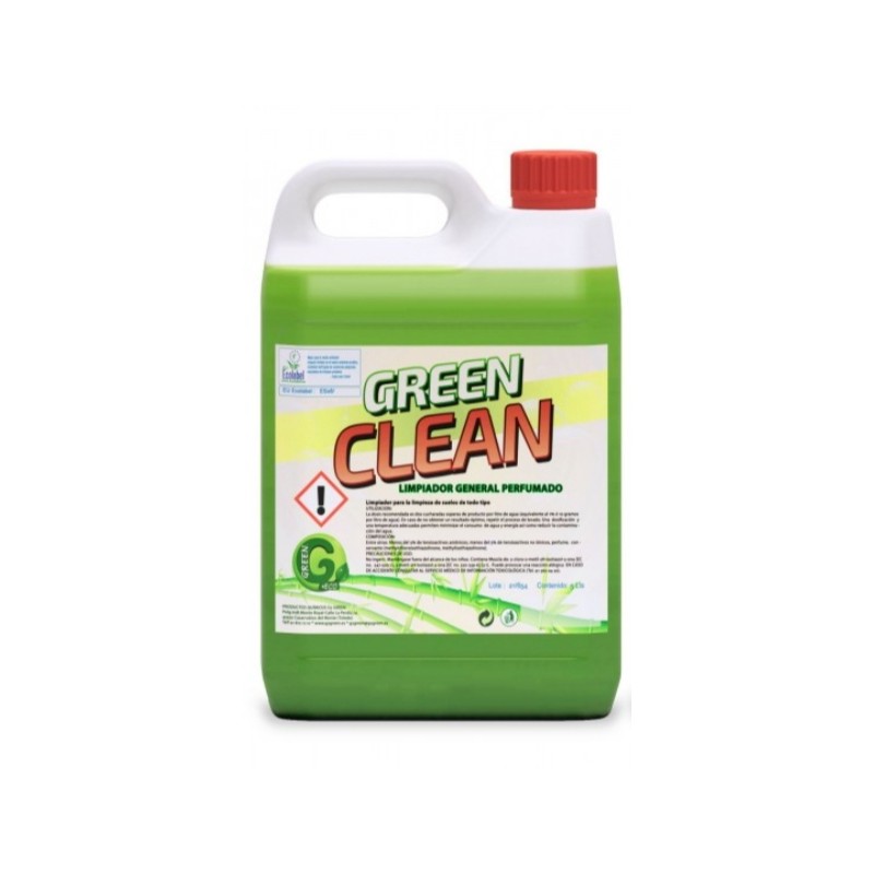 Limpiador perfumado suelos ecológico 5L Green Clean fregasuelos para todo tipo de suelos, concentrado EU Ecolabel : ES08/020/0018. Uso en todo tipo de suelos en hoteles, restaurantes, colectividades, hospitales, clínicas, colegios, gimnasios.