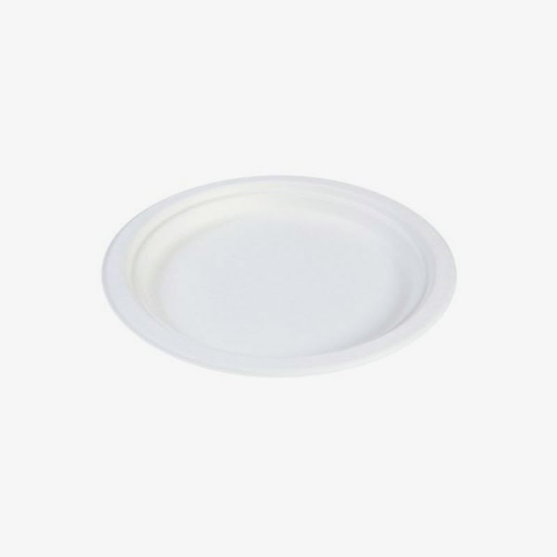Plato redondo caña de azúcar biodegradable redondo blanco 1000 unid , medida 17cm, 100% biodegradable, apto para comida caliente y fría, aperitivos, postres. Uso en hostelería, restaurantes, catering.